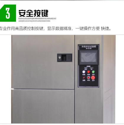 1、三箱設(shè)備區(qū)分為:高溫區(qū)、低溫區(qū)、試驗(yàn)區(qū)三部分 ,測(cè)試產(chǎn)品置于測(cè)試區(qū),沖擊時(shí)高溫區(qū)或低溫區(qū)的溫度沖擊入測(cè)試區(qū)進(jìn)行沖擊,測(cè)試產(chǎn)品為態(tài)式 ;